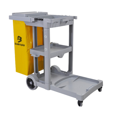 Este carro foi desenvolvido para otimizar a produtividade das tarefas de limpeza, pois transporta com segurança e praticidade, diversos acessórios e produtos para ações de limpeza úmida ou seca.